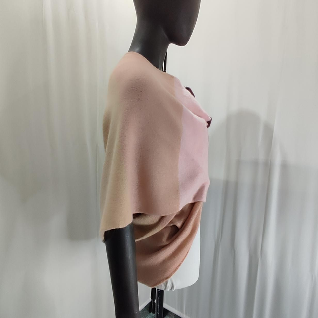 Entdecke pure Eleganz und sanften Luxus mit diesem handgefertigten Cashmere-Poncho. Jedes Stück entsteht in liebevoller Handarbeit und verbindet außergewöhnliche Weichheit mit modernem Design. Die harmonische Farbkomposition aus zarten Nude- und Rosétönen, kombiniert mit einem edlen Bordeaux-Akzent, macht dieses Modell zu einem stilvollen Highlight für jede Jahreszeit.